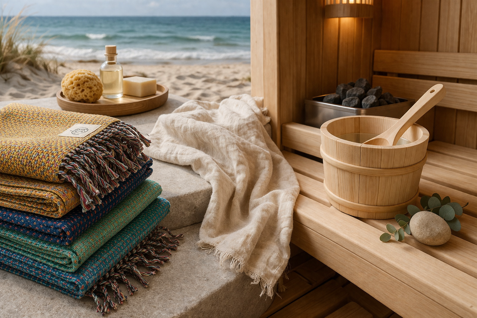 Hamamtuch oder Saunatuch – was ist der Unterschied? Erfahre, welches Tuch besser zu Sauna, Strand, Reisen und deinem Alltag passt.